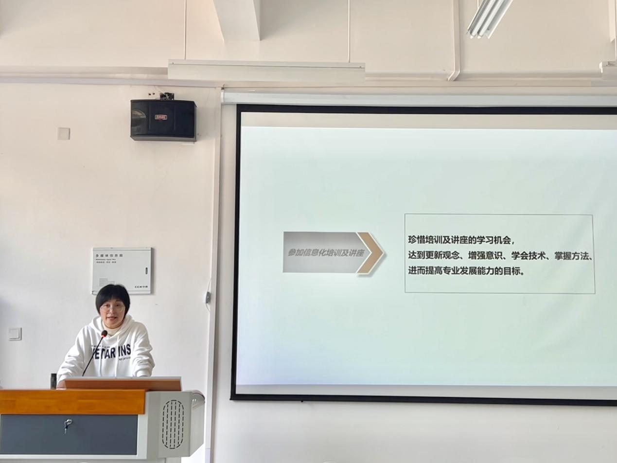 活动开始由陈丽平老师进行解读,主要围绕系部统筹安排及教师个人规划,展开讨论交流。强调教师信息化教学能力提升是一个复杂的系统工程,需要系部和教师齐心协力、相互配合,综合运用多种策略,力求收到良好效果,激励教师积极投身信息化教学,促进自身信息化专业的发展。齐心协力共同推进医学健康系健康、积极的发展。