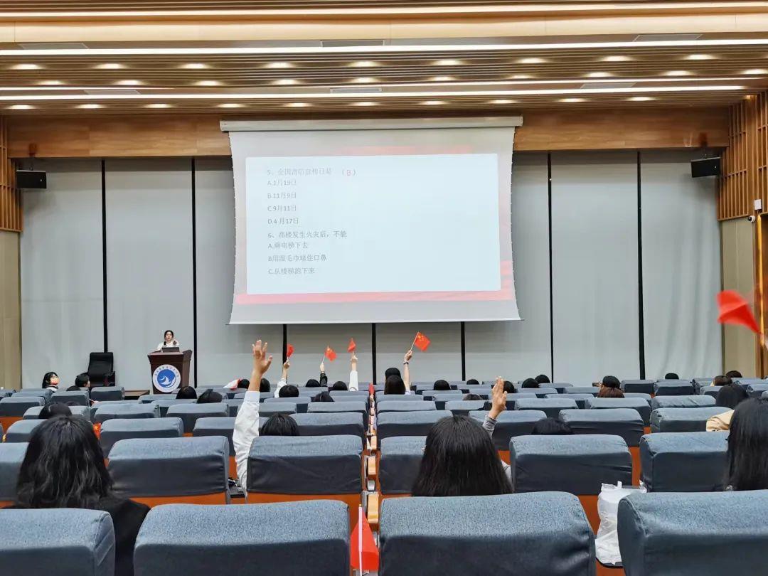 影片结束后,主持人为大家科普了消防小知识,并且带领大家观看宿舍防火小视频,提醒同学们:火为我们提供方便的同时又藏着重重危机,稍有不慎就会引发火灾,要增强防火意识!
