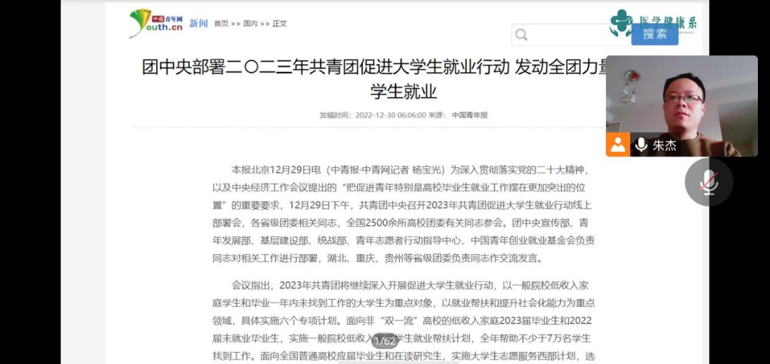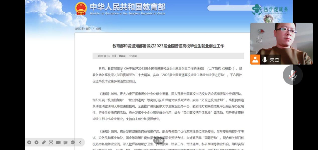 为深入贯彻落实党的二十大精神,以及中央经济工作会议提出的“把促进青年特别是高校毕业生就业工作摆在更加突出的位置”的重要要求 。12月31日,医学健康系召开2023届毕业班就业创业工作推进主题班会,深入学习贯彻党的二十大精神,以习近平新时代中国特色社会主义思想为指导分析形势,详细布置,调动各班主动就业创业能动性。
